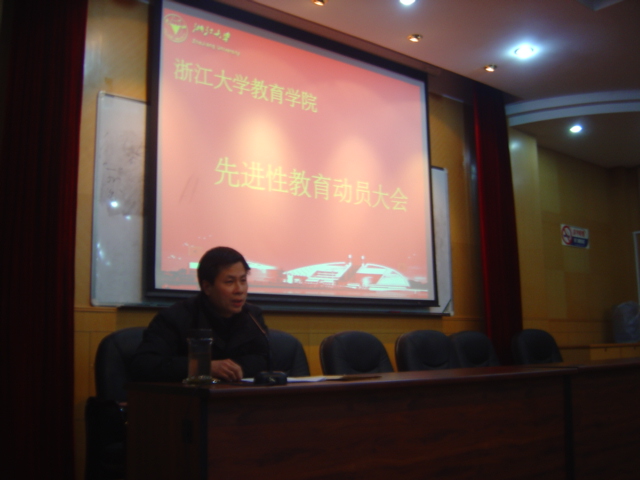 根据浙大党委发[2006]4号文件《中共浙江大学委员会关于在高年级本科生和博士研究生党员中开展保持共产党员先进性教育活动的通知》精神和全面贯彻落实校党委组织部、学工部、研工部的工作部署,2月22日晚,教育学院在田家炳书院报告厅召开了高年级本科生、博士研究生党员保持共产党员先进性教育活动动员大会,对本学期开展保持先进性教育活动做了动员和部署。会议由学院党委副书记徐向阳主持,学院先进性教育活动领导小组成员、工作小组成员以及学院全体高年级本科生、博士研究生党员参加了此次会议。