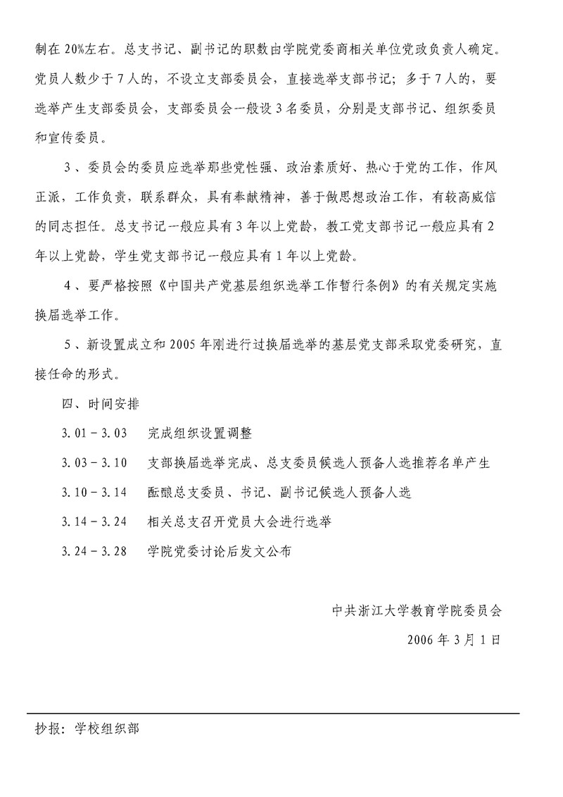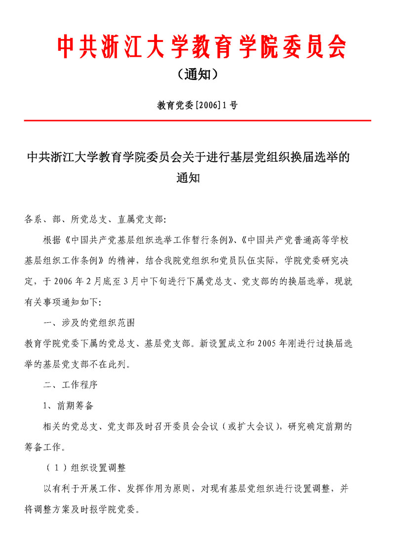 教育党委[2006]1号 中共浙江大学教育学院委员会关于进行基层党组织换届选举的通知