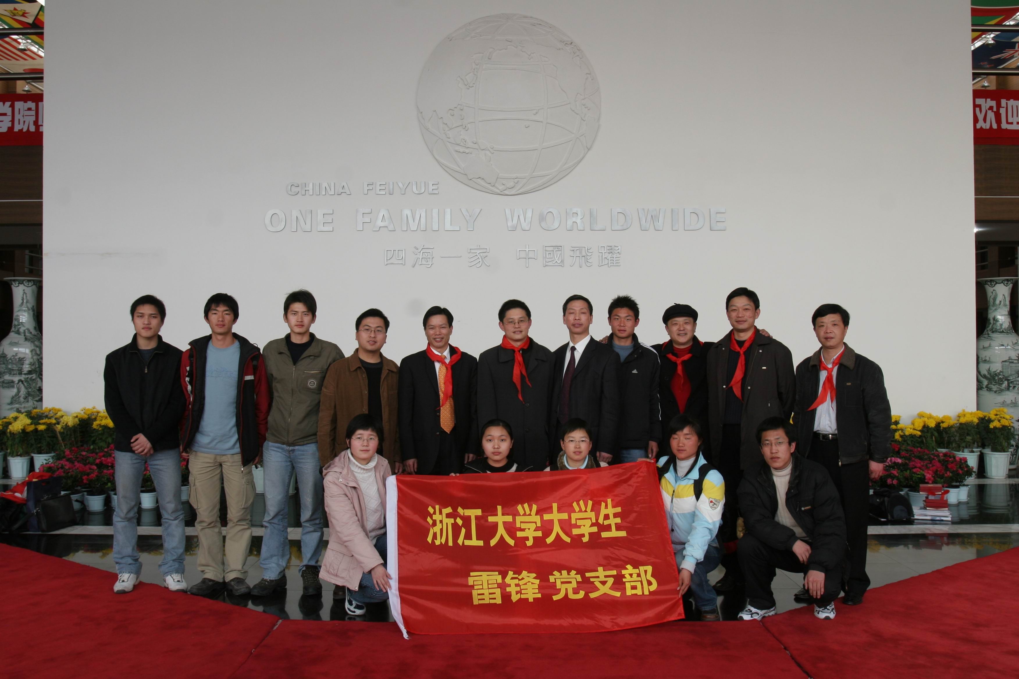 本次活动中,教育学院师生党员参观了飞跃集团的产品陈列馆和党建活动中心,参加了红色经典----《时代呼唤雷锋》的首映式,紫金港校区本科生党支部还接过了“浙江大学大学生雷锋党支部”的旗帜,接受了由《时代呼唤雷锋》剧组导演江海赠送的《时代呼唤雷锋》专题片的光盘,并与台州椒江区委组织部、飞跃集团党委、同济大学机械学院党委的领导一起,就在新的历史条件下更好地开展党建工作进行了研讨。党委副书记徐向阳还介绍了教育学院紧紧围绕学院事业发展,围绕“教育人、提高人、发展人”的党建工作理念,提出要以落实党员先进性教育长效机制为抓手,以师生支部共建和本硕博支部联动为途径,通过“研讨式学习”和“实践式锻炼”的“双式”教育载体,让师生互动、互学、互促,把十六号文件精神贯穿于学院党建工作的始终。