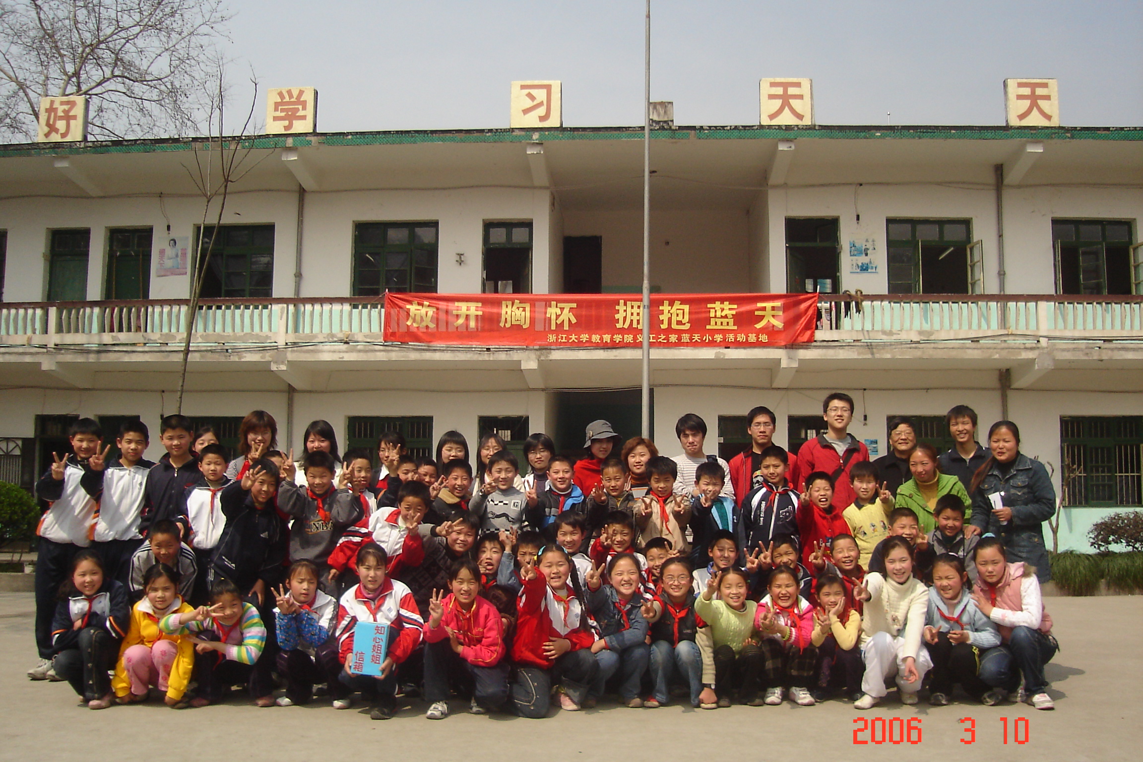西湖区蓝天小学是一所民办小学,也是一所专门为民工子弟开办的小学。蓝天小学占地不大,校舍不多,教员也仅二十几人,没有多媒体教室,没有电视机,条件与其他中心小学相比较为落后,又是以招收民工子弟为主,长期以来一直受到社会各界的关注。3月7日我们公共事业管理0401义工服务小分队的同学们经过三个小时的寻访(由于没有查找到可联系的电话号码),终于来到位于汽车西站附近居住区内的蓝天小学。金校长对于我们浙江大学教育学院学生的到来非常高兴,并亲切地接待了我们。在金校长的带领下,我们参观了蓝天小学,在随后的谈话中,我们了解了蓝天小学的具体情况,为我们开展活动制订计划积累了丰富的资料。