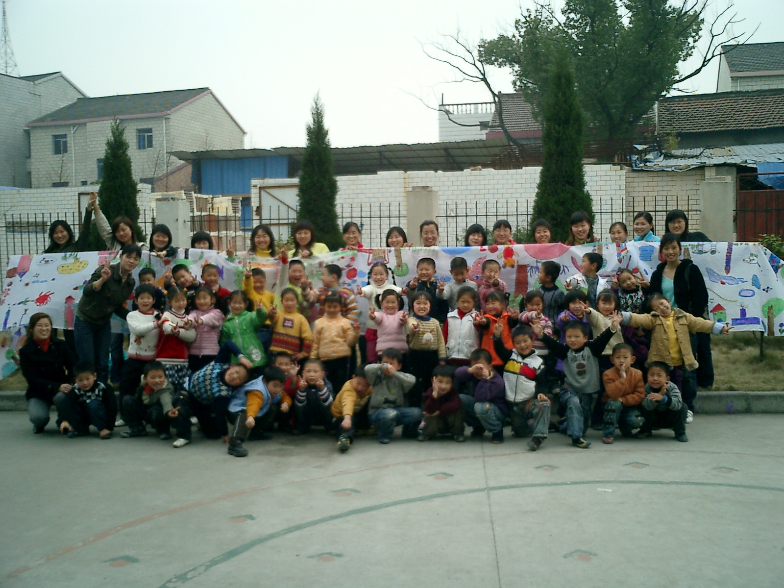 时间过得很快,不一会儿,一副绚丽夺目的画完成了,如果不是亲眼所见,我真的无法想像这么小一帮孩子会创造出这样一副画!