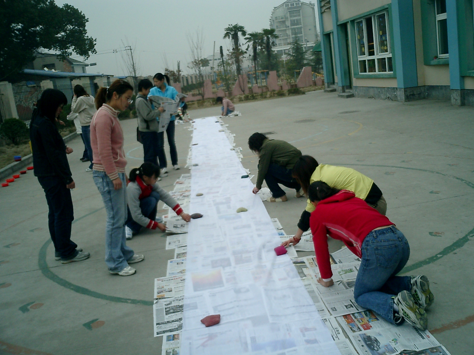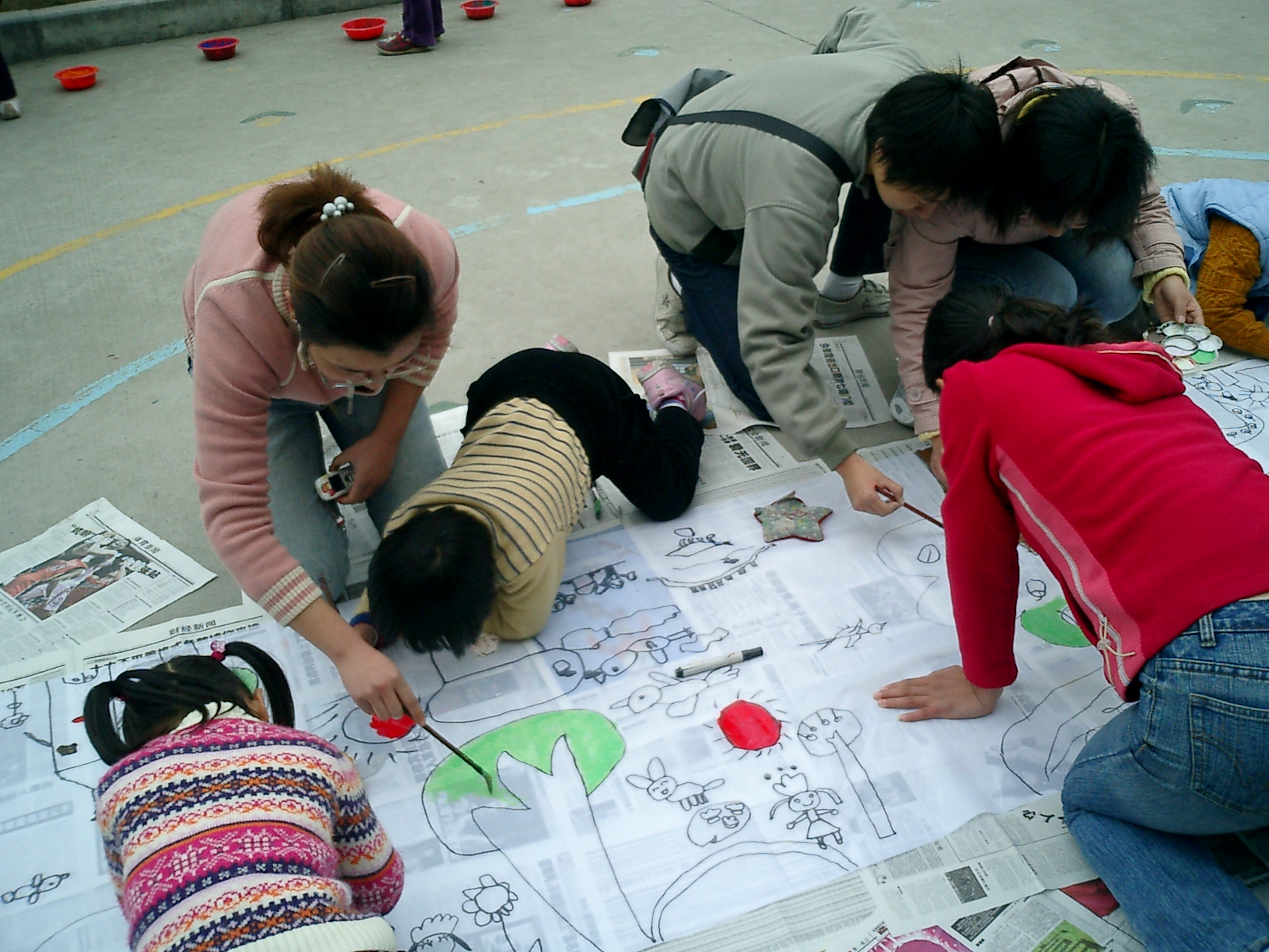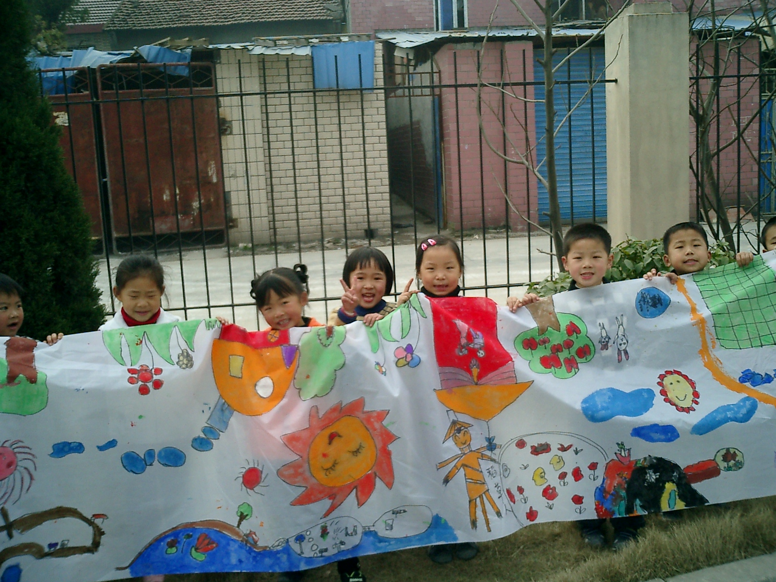 时间过得很快,不一会儿,一副绚丽夺目的画完成了,如果不是亲眼所见,我真的无法想像这么小一帮孩子会创造出这样一副画!