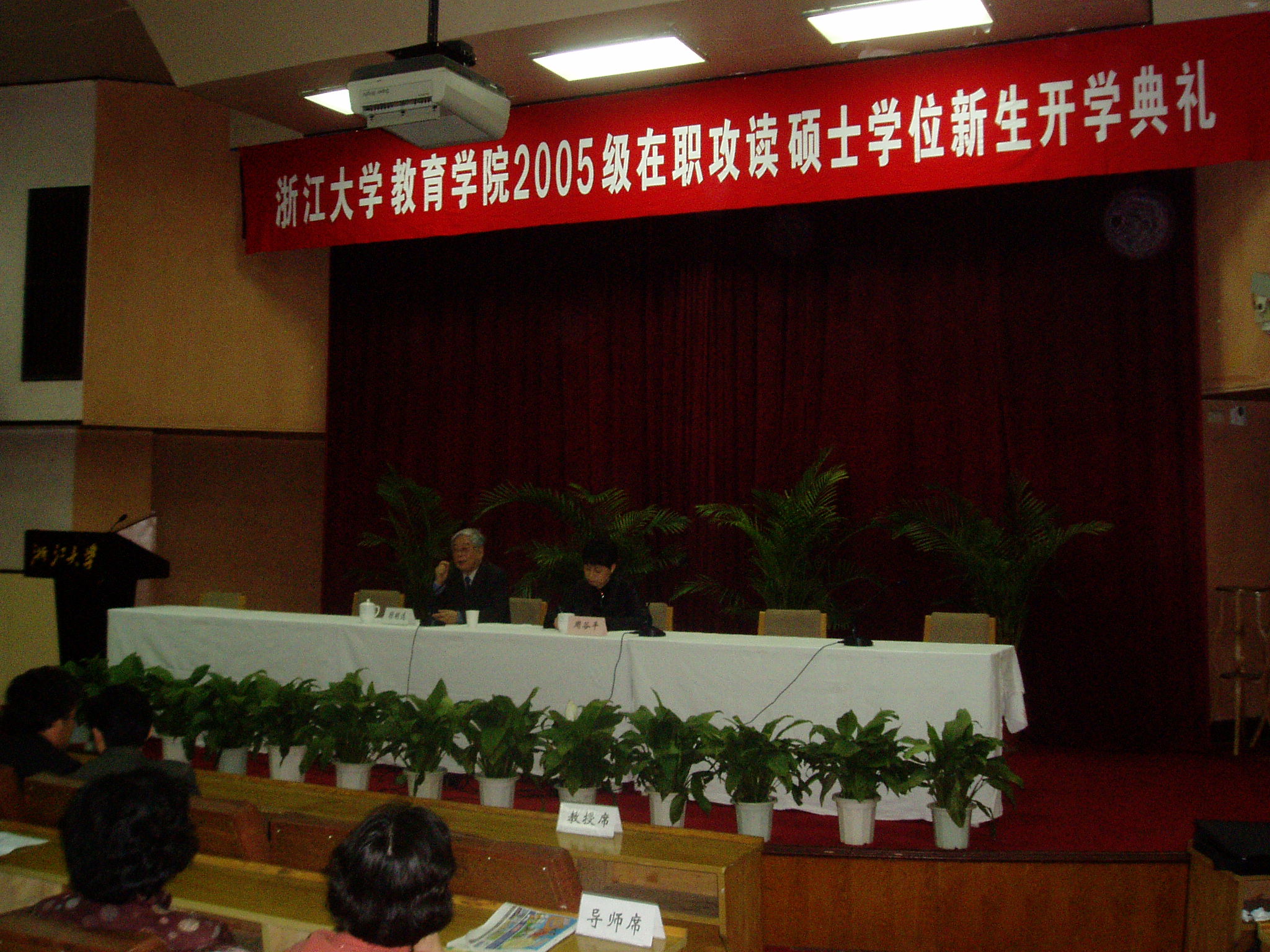 教育学院2005级在职攻读硕士学位新生开学典礼于4月1日上午在西溪校区邵科馆隆重举行。典礼由学院党委副书记徐向阳主持,学院常务副院长周谷平、党委书记许迈进、副院长丛湖平、徐小洲,相关专业导师和全体2005级在职攻读硕士学位新生参加了典礼。