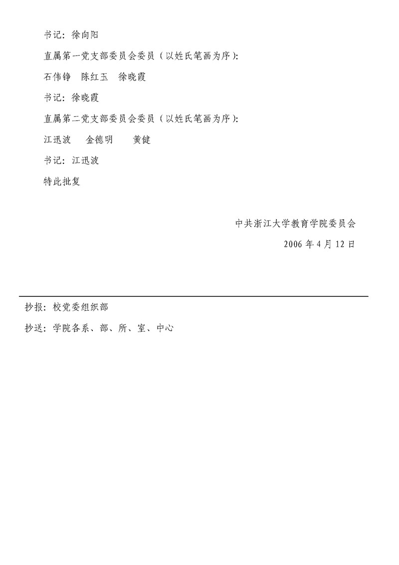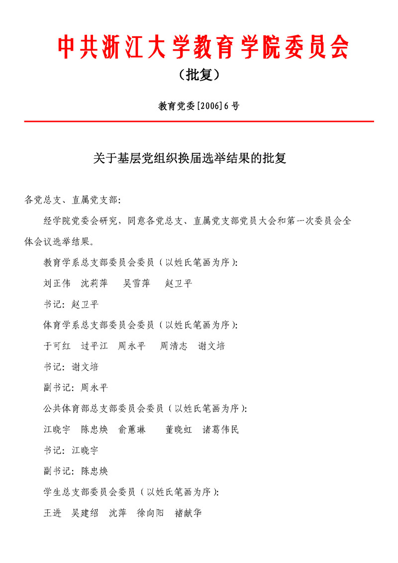 教育党委[2006]6号 关于基层党组织换届选举结果的批复