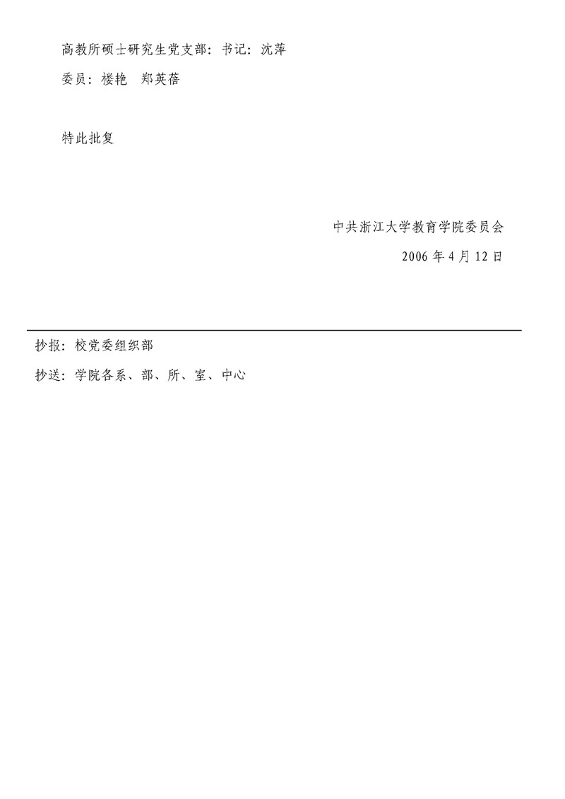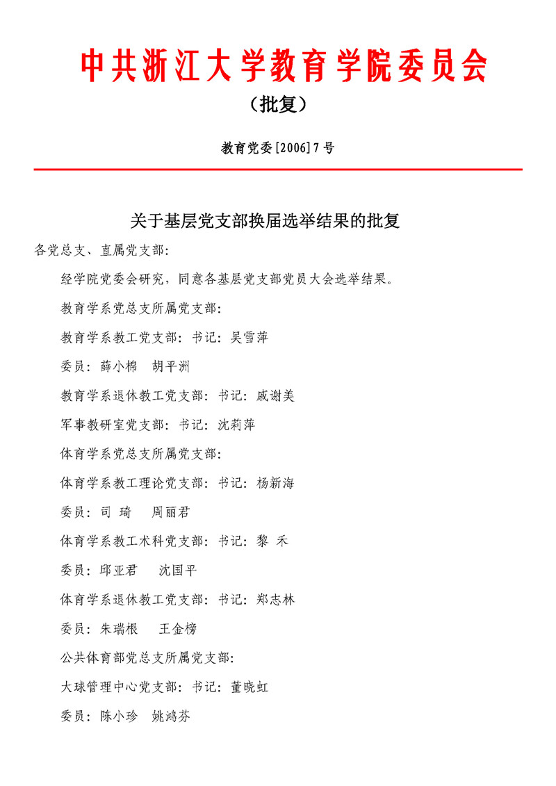 教育党委[2006]7号 关于基层党支部换届选举结果的批复