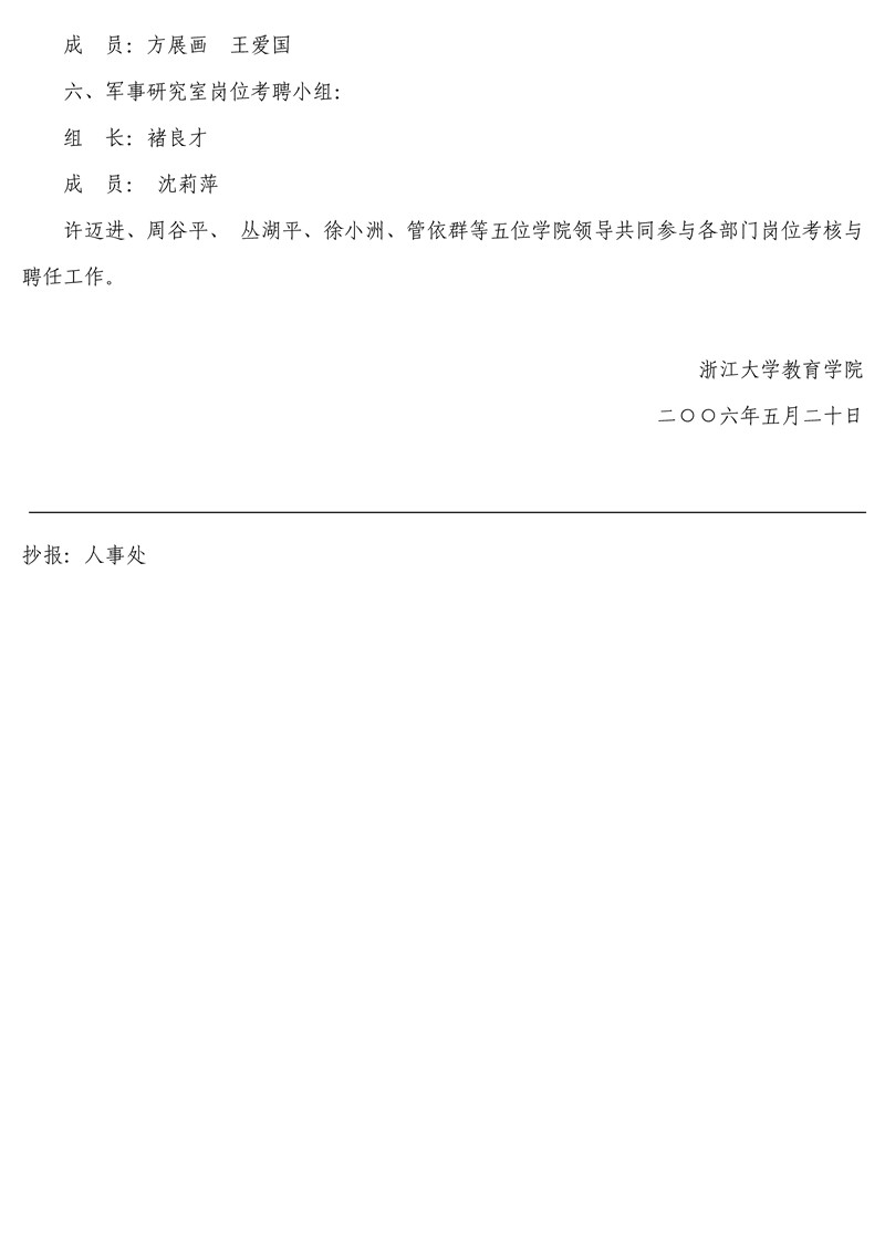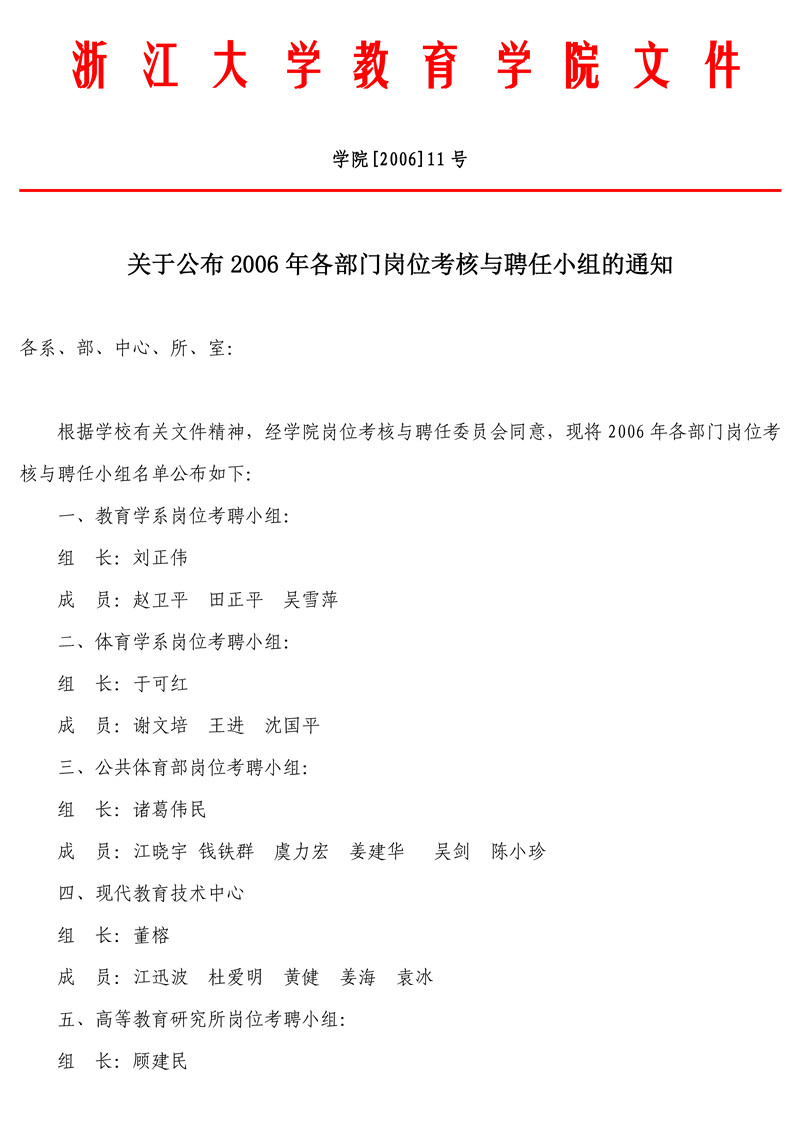 学院[2006]11号 关于公布2006年各部门岗位考核与聘任小组的通知