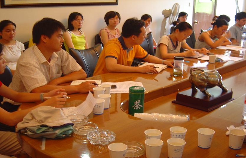 上午9时,教育学院2006年暑期社会实践动员大会在西溪田家炳书院顺利召开。教育学院党委副书记姚信老师、学院团委书记吴建绍老师、团委副书记许娇老师和本次社会实践全体成员参加了大会。会议由团委书记吴建绍老师主持。
