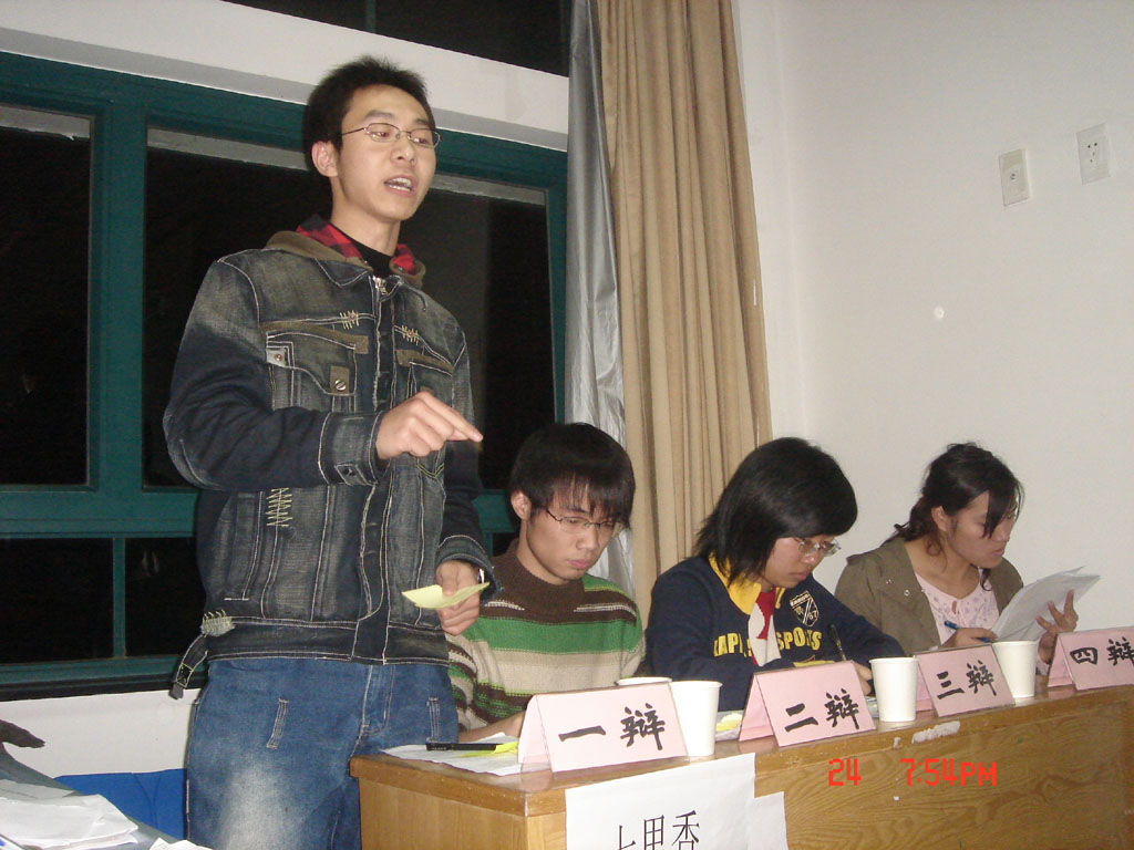 11月25日晚上六点半,紫金港东1A—216,由教育学院团委、学生会组织的新老生辩论赛预赛落下战幕。崔婧蕾老师作为评委之一。辩论赛上,新老生尽情发挥自己的辩论才能,引起了一阵阵的高潮。