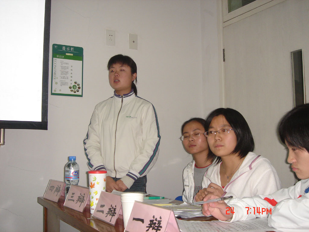 此次辩论赛各队伍成员是由教育学院不同专业、不同年级的同学交叉组成。第一场由“纵横”队对阵“三寸不烂舌”队,第二场由“头文字D”队对阵“十里香”队。两支反方队伍在预赛中胜出,教育技术0501班的翁志飞、教育学类0601班的金露茜两名同学分别获得各场的最佳辩手称号。