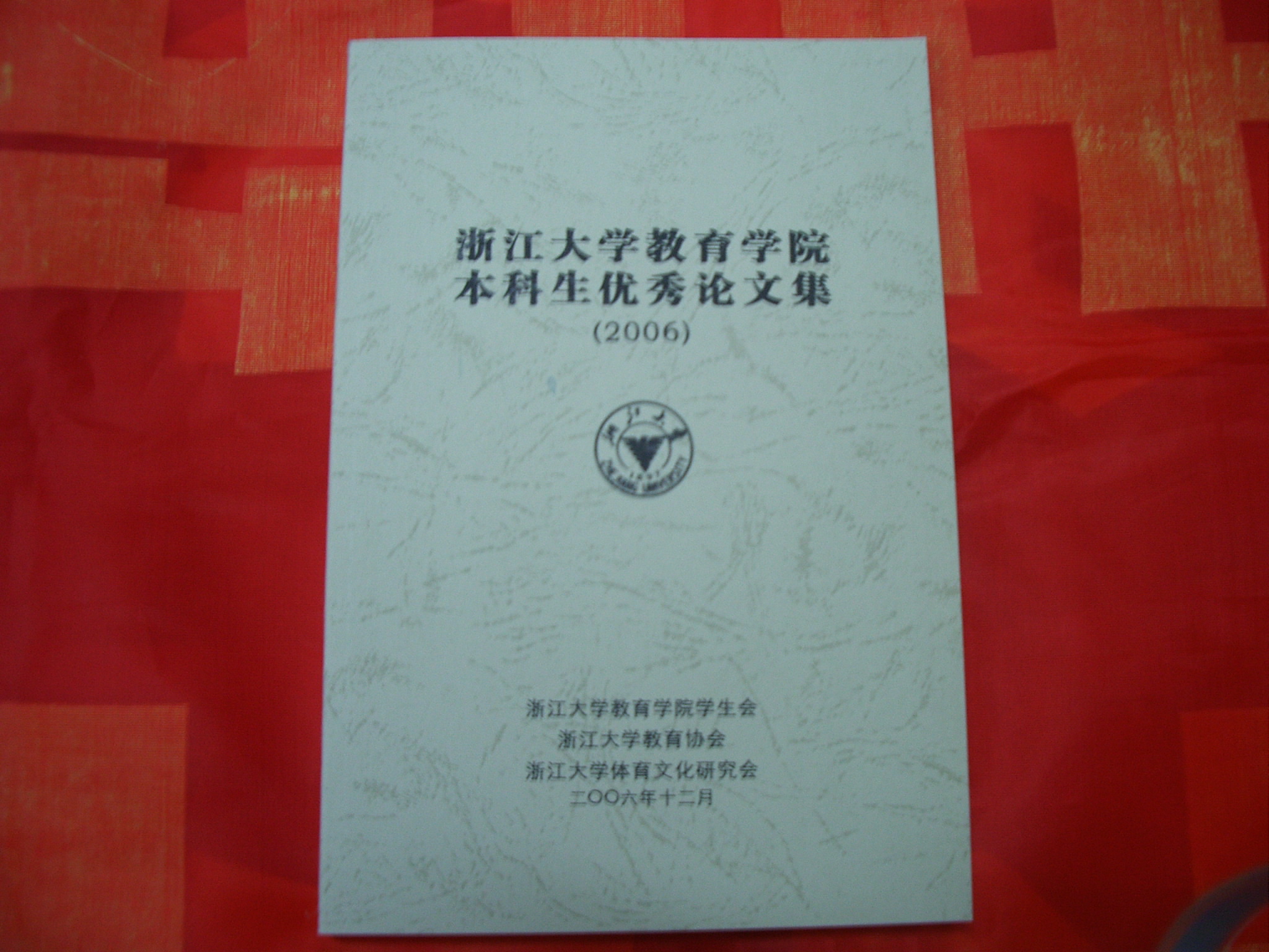 大会第二项内容是教育学院2005-2005年度本科生优秀论文报告会。此次论文报告会专门编印了《浙江大学教育学院2005-5006年度本科生优秀论文集》,共有35篇文章投稿,其中的18篇收录到优秀论文集中。报告会上选取了3篇以报告形式向师生展示,同学们作了积极的提问和讨论。