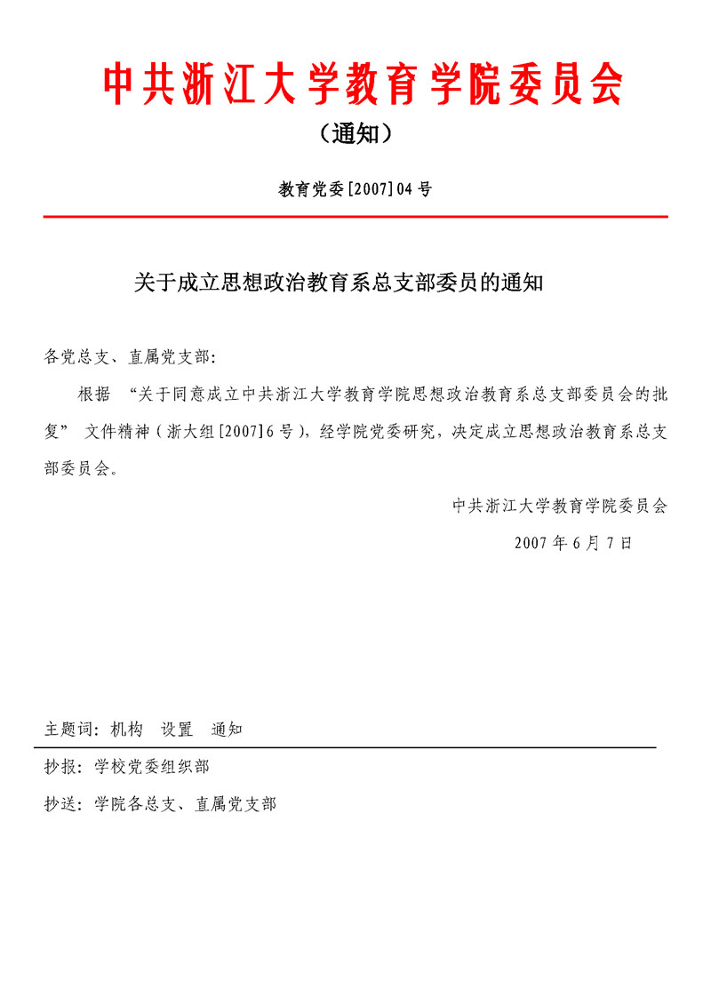 教育党委[2007]4号 关于成立思想政治教育系总支部委员的通知