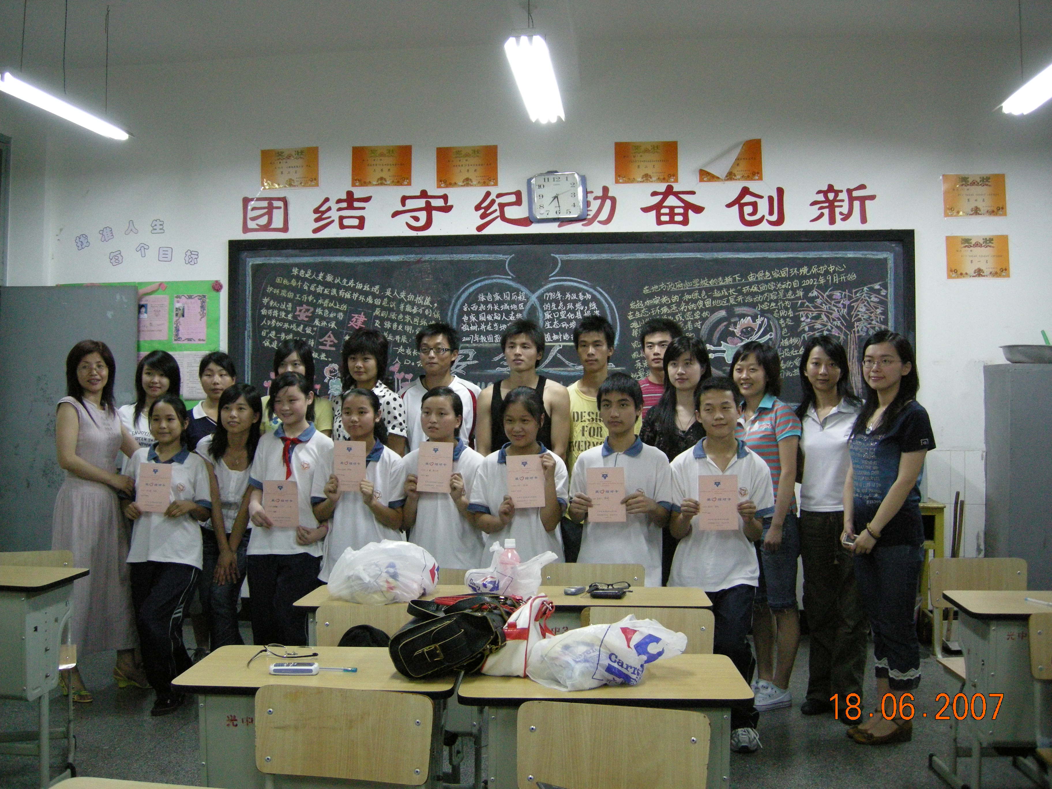 9点左右,我们学生目送这些孩子回家。而后,我们学生和他们学校的老师进行了积极的交流。了解了他们这些孩子普遍存在的问题和我们与他们交流时应注意的一些问题。这让我们学生对这些孩子有了进一步的了解,也为接下来的工作打下了结实的基础。交流和讨论在不知不觉中接近尾声,最后大家商定在这周周末对这些孩子进行一次考前的辅导,并决定在以后的每周进行一次辅导。我们学生根据自己的学科情况,结合自己的优势由两位学生分别结对一个孩子,我们的学生信心充足,我们深信我们会“许给他们一个灿烂的未来”