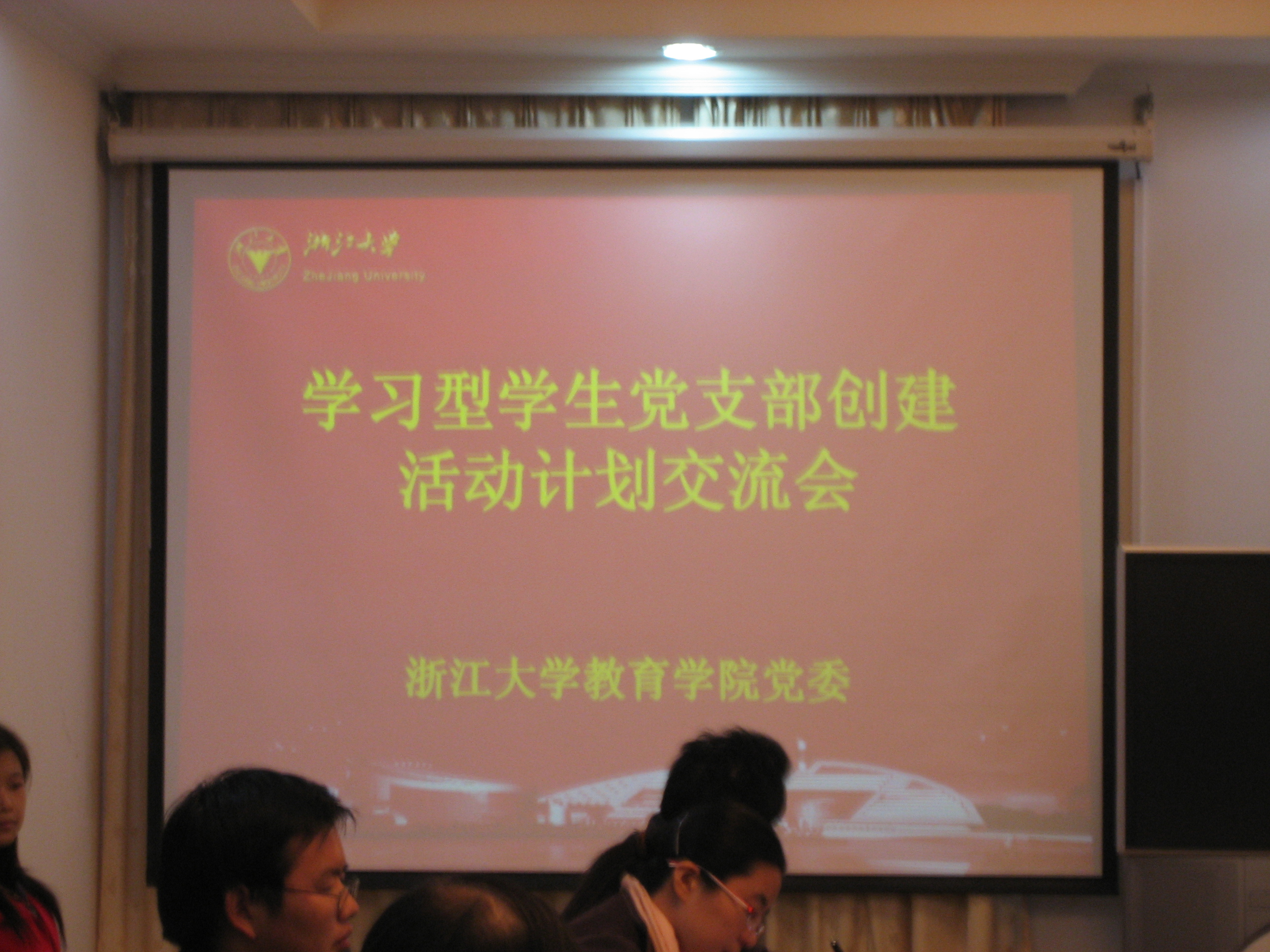 2007年11月1日下午2点,教育学院学习型学生党支部创建活动计划交流会在西溪校区田家炳书院二楼会议室召开,学院党委书记许迈进、党委副书记姚信、张继昌,创建计划领导小组成员,学院本硕博12个学生党支部的全体支委,出席了此次交流会。会议由学院团委书记吴建绍主持。