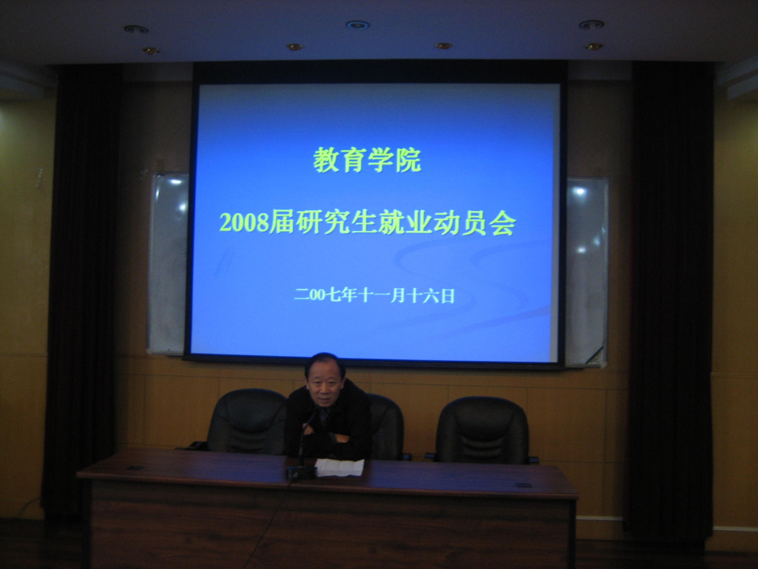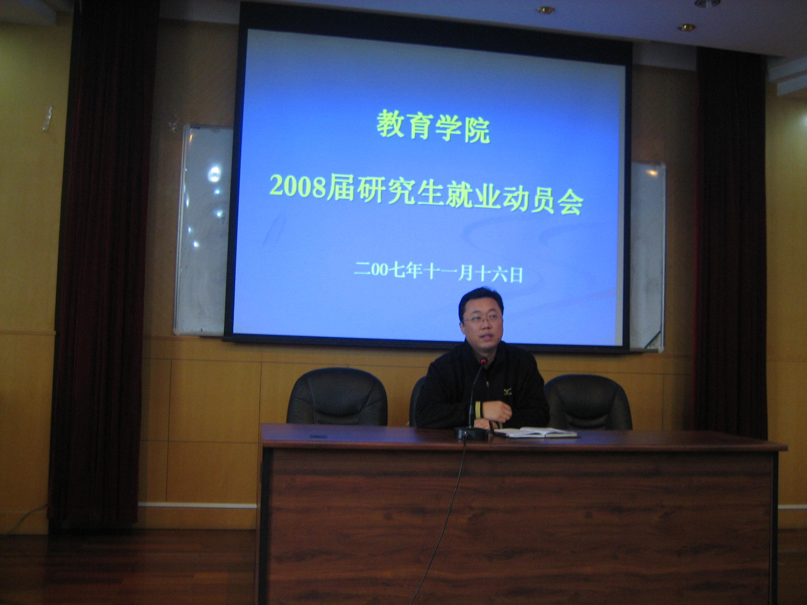 教育学院2008届毕业研究生就业动员会于2007年11月16日在田家炳书院506报告厅举行。党委副书记姚信、张继昌,学院研究生科管理人员,2008届非在职毕业研究生参加了动员大会。
