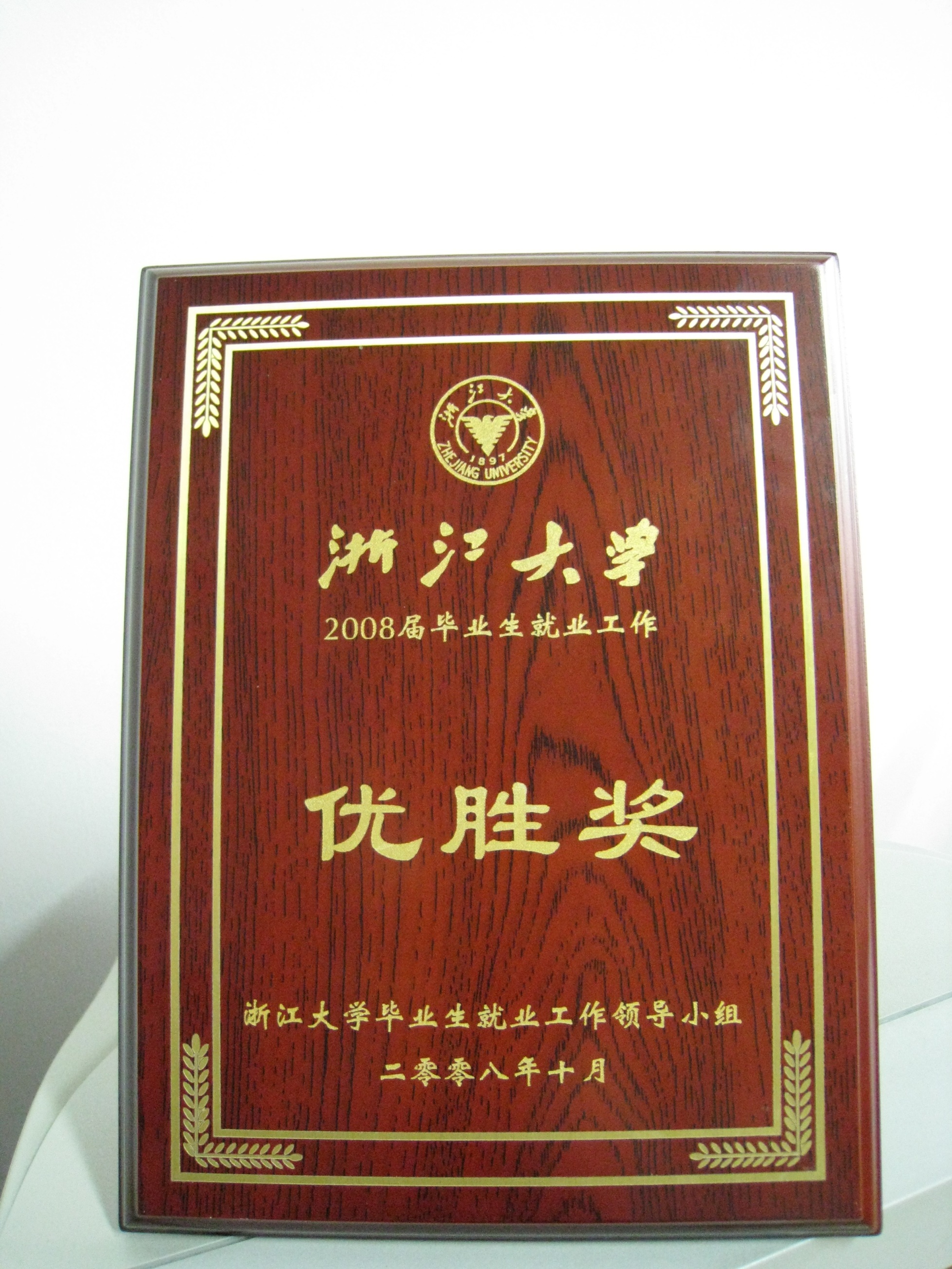 10月30日,我校召开2008年招生就业工作总结会,叶高翔副书记和姒健敏副校长代表学校就业工作领导小组表彰了荣获2008届毕业生就业工作优胜奖和鼓励奖的学院,并亲自为所有获奖学院颁发了奖牌。我院荣获2008届毕业生就业工作优胜奖。获得就业工作优胜奖的学院还有经济学院、机械与能源工程学院、材料与化学工程学院、电气工程学院、生物系统工程与食品科学学院、药学院、管理学院、竺可桢学院和计算机科学与技术学院。人文学院、公共管理学院和航空航天学院获得就业工作鼓励奖。