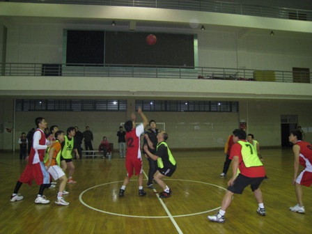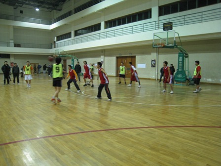 趣味运动会分为两个部分:趣味比赛和师生篮球赛。趣味比赛中设有夹弹珠接力、趣味接乒乓球、转圈投羽毛球、背靠背夹气球等项目。比赛提倡师生组队,跨学科组队参加,每队2人。广大师生积极参与其中,热闹的体育馆里笑声不断,师生的互动融洽而活跃。与此同时,师生篮球赛也在紧张激烈的气氛中进行着。学生队和教工队的比分一直不相上下。教师和学生之间的精彩比赛引得周围加油声和鼓掌声不断。最后教工队以56:52的比分战胜了学生队。