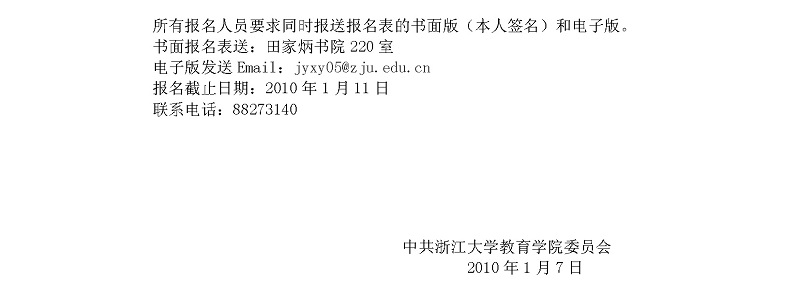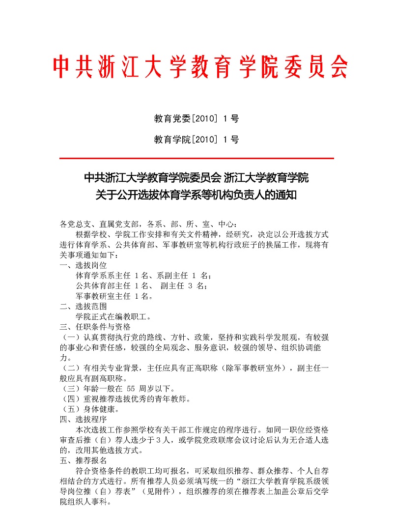学院〔2010〕1号:中共浙江大学教育学院委员会 浙江大学教育学院关于公开选拔体...