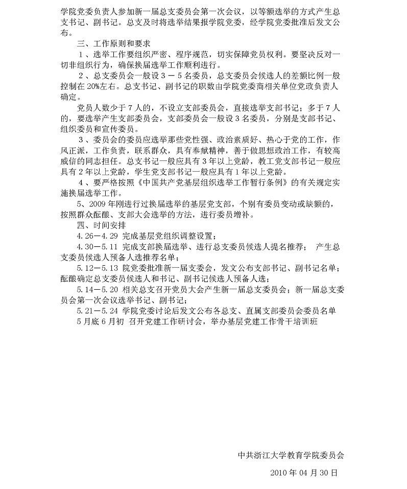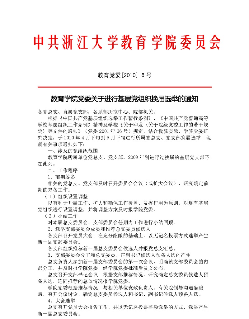 教育党委〔2010〕8号:教育学院党委关于进行基层党组织换届选举的通知