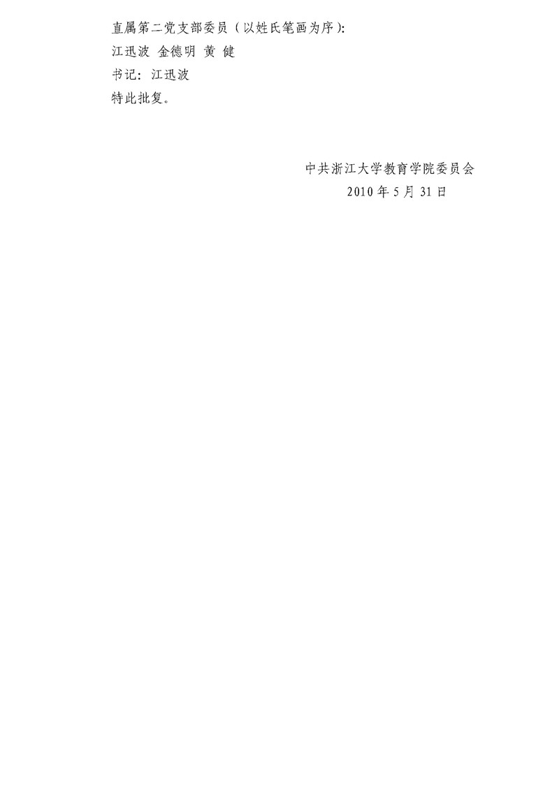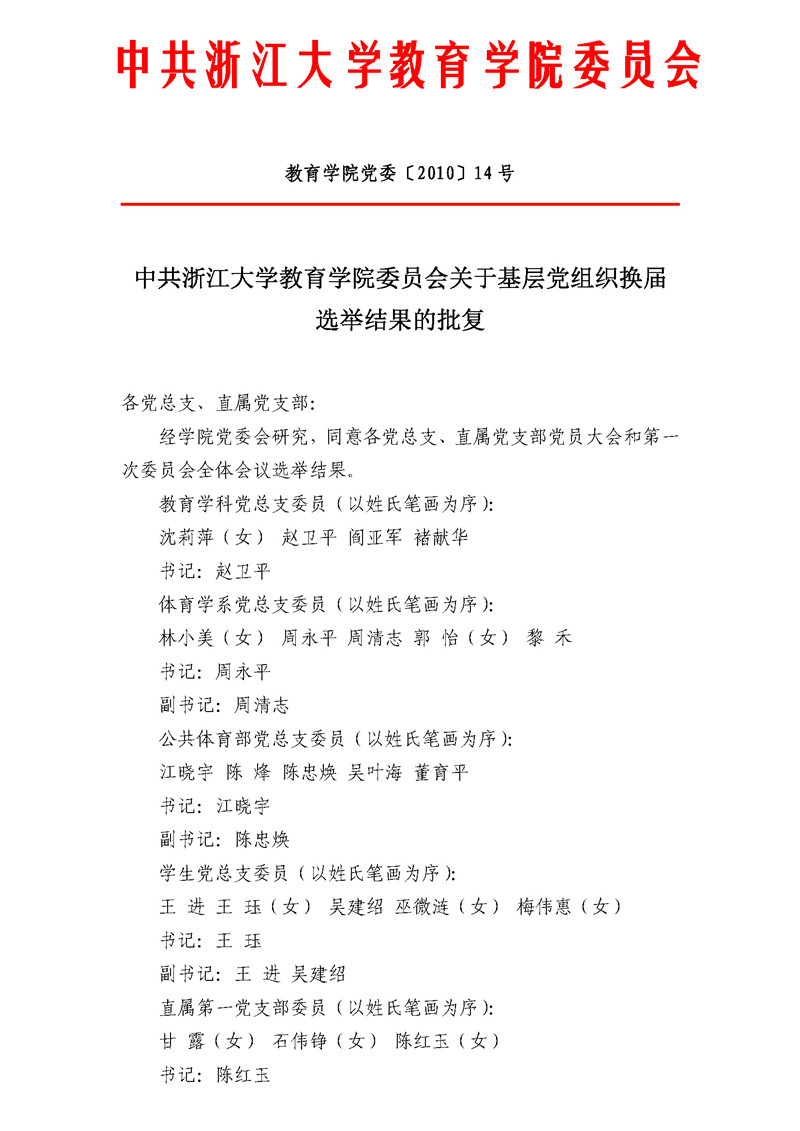 教育党委〔2010〕14号:中共浙江大学教育学院委员会关于基层党组织换届选举结果的批复