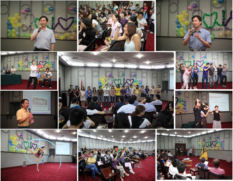 这里举办着一个别开生面的欢乐盛宴,这里演奏出一曲令人难忘的离别乐章:合唱、独唱、歌曲串烧、独舞、艺术操、魔术、相声、小品、综艺表演、短剧……,同学们、老师们精心准备的节目一一呈现。离别在即的毕业班同学、朝夕相处的学弟学妹,课堂上诲人不倦的老师,这一刻全部成了最具才华、最光彩耀眼的表演“明星”:教育学专业2010届本科毕业生朱琳同学以一支优美的民族舞《吐鲁番的葡萄熟了》,祝福同学、感谢老师,寓意毕业生经过求是园的洗礼将满载收获走向新的旅途;民族传统体育专业2010届本科毕业生毛亚琪、应明、章波一起演绎《奔跑》,诠释了求是学子永不停步的信念,希望老师和同学们记住民传首届学生的努力和奋斗;4个研究生毕业班、4个本科毕业班的风采展示,同学们幽默而又饱含深情的述说,展现大学学习的苦辣酸甜,表达学子对母校和老师的浓浓情谊和诚挚谢意,对同学和校园的依依不舍之意,让在场师生沉浸其中。