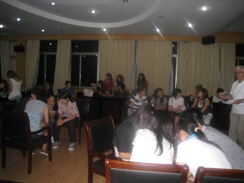 在结束白天的行程之后,当天晚上,意中师生齐聚西溪校区田家炳书院520室,通过一些简单而有趣的小游戏进一步增进彼此之间的了解。从“Rock, Paper, Scissors”(石头·剪子·布)互报姓名小游戏到小话剧表演,活动中大家欢声笑语不断。双方学生踊跃参与各项节目中,合作竞争,充分体现了两国青年的活力与创造性。意方教师Cianciullo Monica 和Dr.Sabbatini还为本次活动做了总结点评。他们充分肯定了双方学生的参与意识以及合作精神,并指出了活动中双方体现出的文化差异以及文化理解和融合的可喜之处。老师的点评引发了大家对两国文化更深层次的思考,也为本次活动画上了一个圆满的句号。
