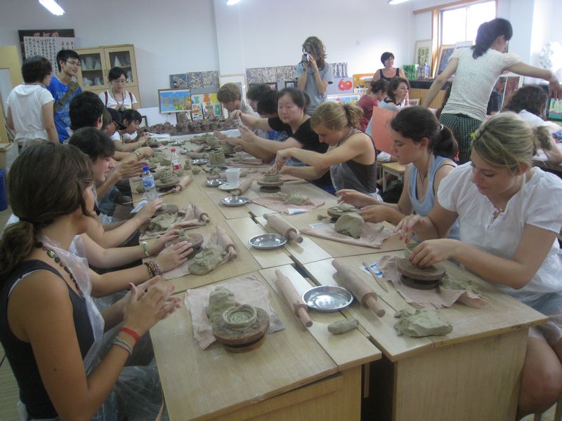 随后,在京都小学师生的帮助下,意大利学生在京都小学美术教室动手实践,进行了泥塑和版画的制作。大家相互参考交流,现场气氛十分热烈。