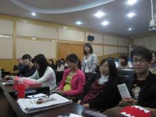 王文智博士生首先以风趣幽默的语言为在座同学和老师带来生动的演讲,他用“论坛发精帖”这个形象的例子解释了做研究发论文的过程。对如何弄懂学术话语、确定关注焦点、获取研究资源和导师指点、在读研期间写好“一大一小”两种论文等问题谈了很有启发的见解,建议大家应该尽可能找到论文与自己研究兴趣或导师布置的研究任务之间的连接点,以便用较少的时间精力投入获得最多的成果。随后王文智学长还就同学们提出的“如何查阅论文”、“如何读书”、“如何选题”等问题与大家展开了互动交流。