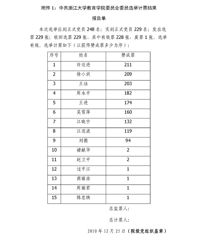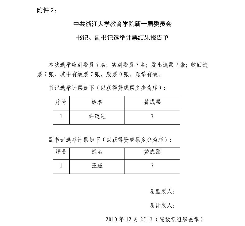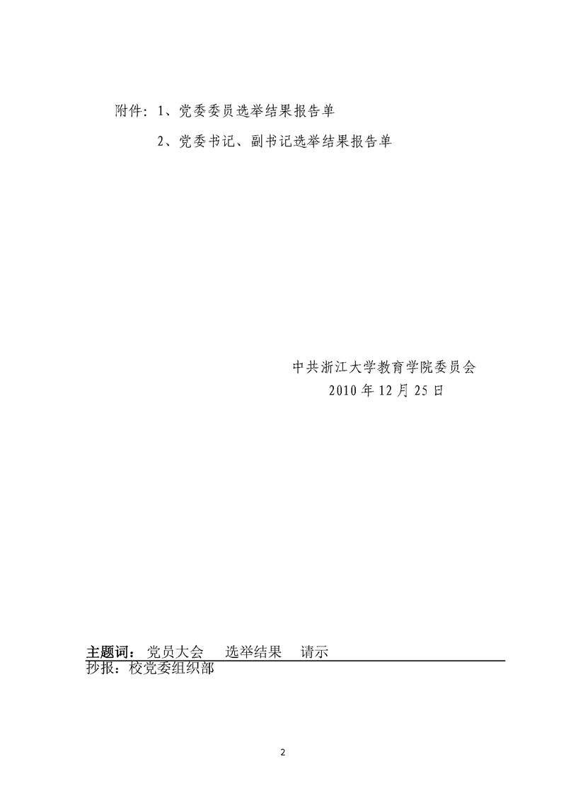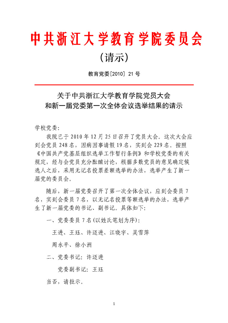 教育党委〔2010〕21号:关于中共浙江大学教育学院党员大会和新一届党委第一次全体会议选举结果的请示