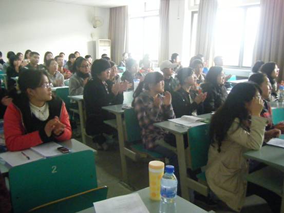 随后,两位从事支教经验丰富的研究生义工张俊和胡秀秀结合自身参与德天小学义工服务,为现场义工们讲解了家教过程中的教学准备、教学方法以及注意事项等,用真实事例提醒义工们在义务家教活动中要准时、善于沟通、着装得体、耐心细致。座位上的义工们纷纷拿起纸笔记下两位研究生的经验之谈。