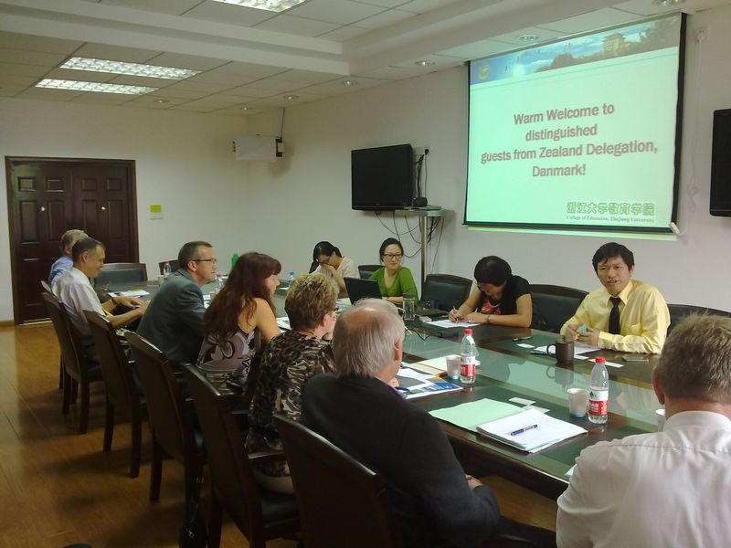 2011年8月29日,以丹麦西兰岛大区政府首席行政主管Jens Andersen为首的代表团8人对我院进行了友好访问。随同来访的有西兰岛大区政府发展和国际关系首席咨询官Kristian Primdal,西兰岛大区政府委员会成员Jeans Sternbak,罗斯基尔大学副校长Hanne Leth Andersen,西兰岛大学院院长 Ulla Koch等。教育学院常务副院长徐小洲教授,教育学系系主任吴雪萍教授,院长外事助理宋吉缮副教授和梅伟惠老师出席了交流会。