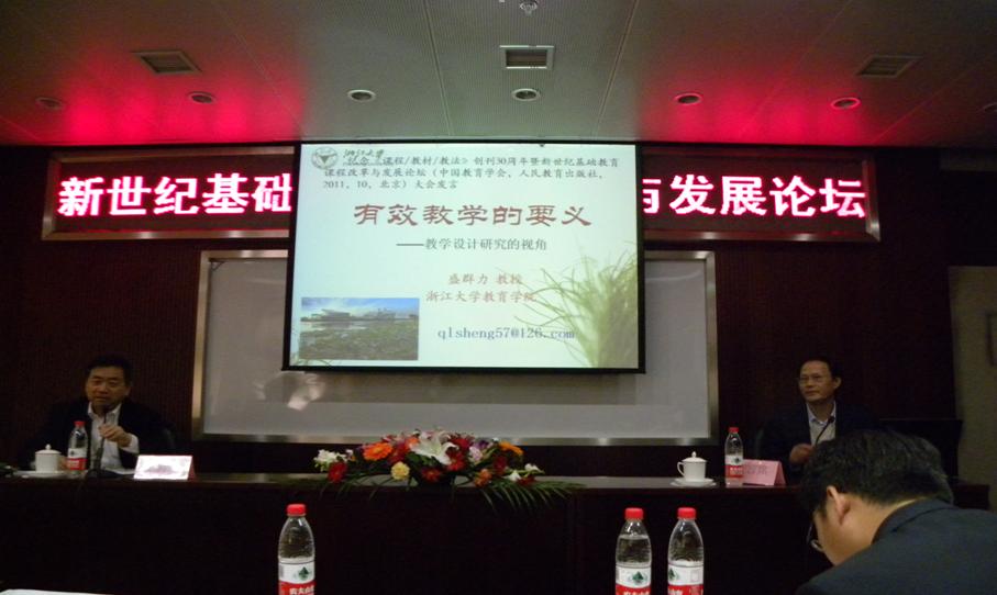 2011年10月29-30日,由中国教育学会和人民教育出版社联合主办的纪念《课程·教材·教法》创刊30周年暨新世纪基础教育课程改革与发展论坛在北京召开,来自全国70余所高校和中小学教师等300余位代表与会,就新世纪基础教育课程改革十年的深度反思,教材、教学改革与教师专业发展等问题展开研讨。课程与教学研究所盛群力教授是本次论坛应邀的大会发言专家之一,他向论坛提交了长篇交流论文《论有效教学的十个要义——教学设计的视角》。该论文总结了国内外教学设计研究的重要成果,尤其是面向完整任务、聚焦解决问题、实现意义学习和落实减负增效的整体化教学设计理论研究新进展,从现代教学理论、教学技术与教学心理研究的融合中提出了促进发展、形成专长、实现迁移、意义生成、内外协调、学教统一、扶放有度、环境友好、系统设计与条件适配等学习与教学的十个要义,试图为新一轮课程与教学改革提供专业见解。盛群力教授论文和论坛发言受到了部分与会代表的重视,其中福建师范大学教育学院余文森教授一直钟情于探讨有效教学,对盛群力教授论文的观点表示兴趣,乐意借鉴。本论文修改后将在课程与教学专业学术刊物上发表;在京教育专业出版社的编辑对本主题也表示很感兴趣,期待成书。