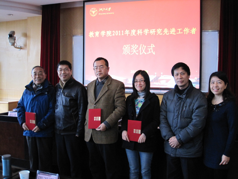 在开幕式上,常务副院长徐小洲教授指出,2011年是“十二五”规划的开局之年,在老中青三代教师的共同努力下,本年度学院的科研工作取得了重要成绩。他宣布,经过评选,田正平教授、王健教授、王力博士荣获2011年度“科学研究先进工作者”称号,罗卫东副校长、许迈进书记和袁清部长分别为获奖者颁奖。