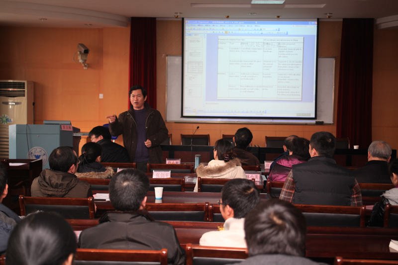 随后,副院长刘正伟教授作了2011年度学院科研工作报告。他分别从科学研究,成果丰硕;青年教师创新团队初具规模;科研国际化继续保持优秀特色;服务地方能力不断提升四个方面回顾了2011年学院科研总体情况。他指出,在科学研究中,近年来学院呈现良好的发展态势,表现在:第一,获奖成果多。2011年共有12项高水平成果获得第四届全国教育科学优秀成果(二等奖4项,三等奖2项)、国家体育总局“十一五”优秀成果奖(二等奖1项,三等奖1项)及浙江省哲学社会科学优秀成果奖(一等奖1项;三等奖3项);科研经费稳步增长,2011年科研经费为839万元,同比增长了18.5%;科研成果国际化程度越来越高,国际学术交流成果喜人。他指出,一流大学需要一流教育学院,一流教育学院需要一流科学研究成果,他认为,学院在高水平、高质量科研成果生产、重大课题承担以及重要学术平台建设方面还有很多努力空间,他希望,学院全体老师在新的一年再接再厉,创出更多更好的优秀学术成果。