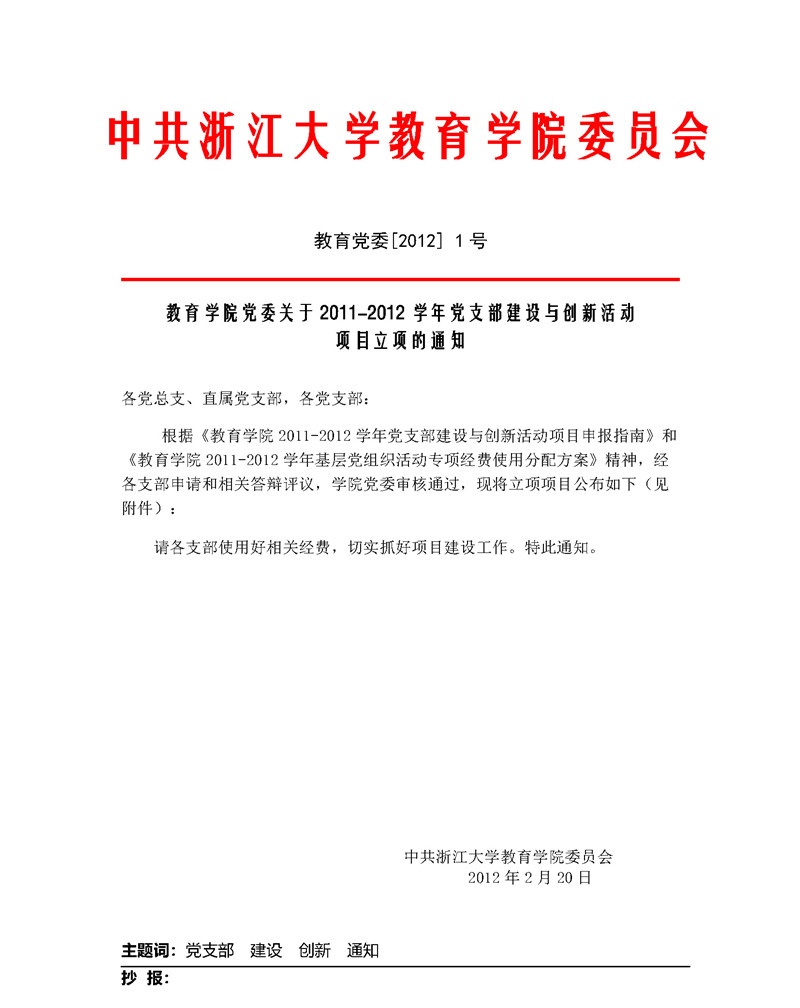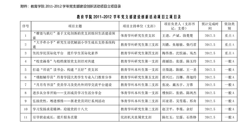 教育党委〔2012〕1号:教育学院党委关于2011-2012学年党支部建设与创新活动项目立项的通知