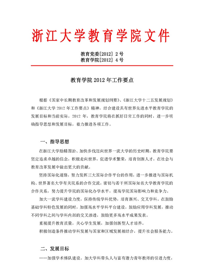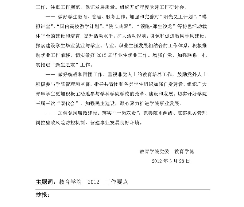 教育党委〔2012〕2号:教育学院2012年工作要点