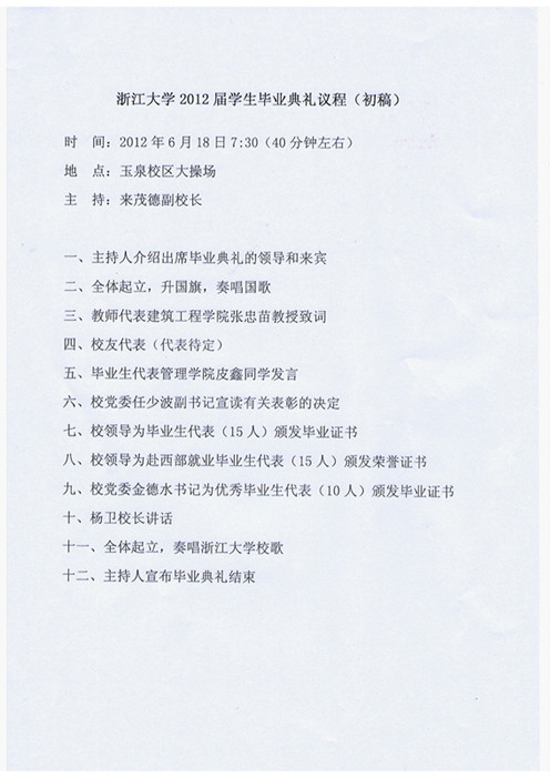 | 6.18 ☆ | 上午7点15分:学校毕业典礼,授学位式① 玉泉校区大操场 | 王珏,研究生科本科生科团委 |