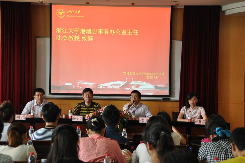 为推进浙江和香港两地青年学子的相互了解,促进两地学子的跨领域学习交流能力和创新创业潜能,由浙江大学主办,浙江大学港澳台事务办公室、联合国教科文组织浙江大学创业教育教席、浙江大学教育学院承办的“2012浙港大学生创新创业交流营”于2012年7月8日上午在在浙江大学西溪校区拉开序幕。