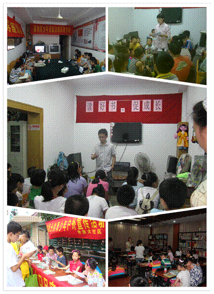 孙淑君 社科1103:7月6日,星期五,这是我来到西牌楼社区的第二天,参加的第一个活动主题是“读好书,促成长”。为了这个活动,我们昨天就去那里布置了一下午。社区阅览室的保管人吕阿婆是一位老革命,她与社区夏老师一起为社区孩子们现身说法,将读书的重要性传达给在座的每一位孩子。活动时间虽不长,但从孩子们如痴如醉的表情中,我们可以看到,爱读书,读好书的观念已经渐入他们的心灵。书籍是人们进步的阶梯,读书使人进步。像这样鼓励大家去读书的活动,我觉得有必要,也很有意义。
