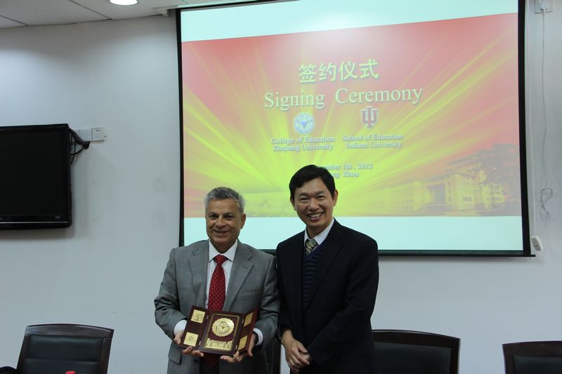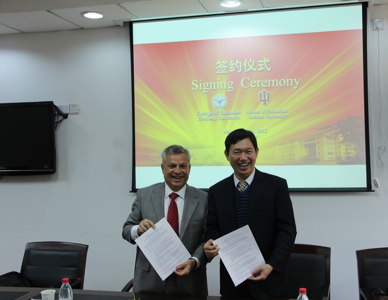 2012年10月30日,美国印第安纳大学教育学院院长Gerardo Gonzalez教授,印第安纳大学东亚研究中心主任Heidi Ross教授对学院进行友好访问。为期5天的访问,双方讨论了深入全面推进合作与交流的途径并签署了合作协议。