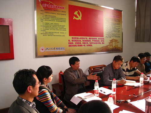 王珏副书记就新形势下持续深入开展创先争优活动、“五好”院级党委创建工作做了介绍,在传达上级部门相关工作精神后对接下来各学生党支部如何规范学生党建工作等相关问题做了工作要求和部署。