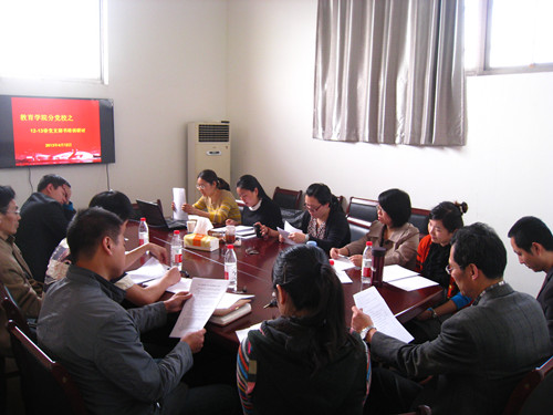 4月12日,教育学院分党校2012-2013学年春夏学期学生党支部书记培训研讨会在学院“党员之家”顺利召开。会议以“五好”院级党委创建试点工作为背景,以如何规范和加强学生党建工作为主题,作了系统而有针对性的工作实务培训,对在规范基础上创新学生党建工作做了深入研讨。院党委书记许迈进,学生党总支委员,教育学科、体育学系总支分管学生工作书记/副书记,各学生党支部书记以及组织人事科和团委相关老师出席了本次培训研讨会。培训研讨会由院党委副书记王珏主持。