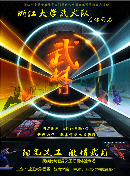 为发扬义工奉献精神,进一步推广民族传统精粹,带领浙大学子切身感受中华武术的魅力,学院团委将联合体育学系,组织以10级、12级民族传统体育专业为主力的同学在临水报告厅现场展示中华武术风采,并与到场师生进行互动与交流,欢迎广大师生积极参与。