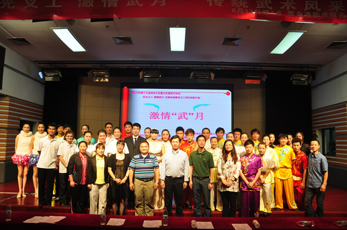 2013年6月13日晚,“阳光义工 激情武月”民族传统体育项目专场表演活动在紫金港校区临水报告厅震撼开演。以浙江大学教育学院民族传统体育专业同学为主的民族传统体育项目专场表演活动,已经多次入选浙江大学学生科技文化节系列活动。本次活动更是作为浙江大学第十五届学生科技文化节暨文化素质教育月专项特色活动,以武术艺术体操表演、阳光义工服务活动为载体,以青春奉献、传承国粹为核心,紧扣时代主旋律,弘扬民族传统文化。教育学院体育学系民族传统体育专业的学生自编、自导、自演了本次表演,体育学系本科生、研究生、博士生积极参与了本次演出。