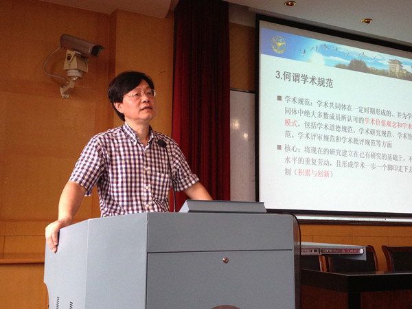 2013年9月7日上午,教育学院2013级研究生始业教育活动之一、新生学术规范导引专题讲座在西溪田家炳书院520报告厅举办,教育学院主管研究生教育副院长顾建民老师担任主讲,学院党委副书记王珏老师主持了当天活动。