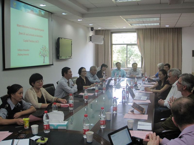 教育学院院长徐小洲教授对代表团一行的来访表示热烈欢迎。院长外事助理宋吉缮副教授简要介绍了学院的基本概况、学科设置、教学科研特色、人才培养和国际交流合作等情况,尤其是学院与海外知名大学、联合国教科文组织开展的一系列合作项目,双方还就学院专业设置、课程内容、教育管理等感兴趣的话题深入进行了交流。会上,堪培拉大学教育学院院长Geoff Riordan教授表示,高等教育国际化和合作办学是未来发展的趋势,堪培拉大学积极寻求未来发展的合作者,希望通过打造大学联盟,进一步加强学术交流和科研合作。堪培拉大学教育学院十分注重国际项目的合作与推广,并将中国视为教育全球化的重要合作伙伴之一。徐院长回应并表示,学校和学院非常重视国际交流,相信强强合作有利于搭建学科建设、人才培养的新平台,并向Riordan院长介绍了浙江大学教育学院和印第安纳大学教育学院、威斯康星大学麦迪逊分校教育学院开展学生联合培养的情况以及我院参与高校产学研合作的现状,他希望双方能通过沟通交流寻求未来合作新的可能性。此外,徐院长还简要介绍了浙江大学作为教育战略协同创新中心、WUN等组织成员所开展的国际交流与合作项目。