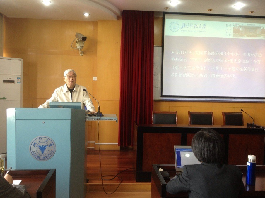 11月6日上午,我国著名教育家、原北京师范大学副校长、原中国教育学会会长顾明远教授应邀来杭,为教育学院师生以及参加“浙派名校长工程”2013初中校长班的学员做了题为“第三次工业革命与教育改革”的学术讲座。
