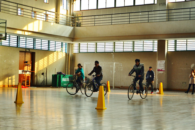 团体比赛结束后,同学们奔赴六个单项活动,开始了个人竞技。在欢乐激扬的音乐声中,这边两队在玩“倾盆大雨”,比赛谁吹的乒乓球多,那边是“定点投篮”,男生女生都在展现投篮技术;前面是两人背对背合作“心心相印”,后面又有两支队伍“大象过河”玩得不亦乐乎;“定力十足”慢慢移动着自行车,隔壁还有“全民夺镖”传来阵阵喝彩;游戏的最后环节还有“幸运气球”尝试自己的运气。