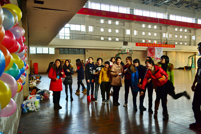 2013年12月21日下午,由学院研博会主办、学生会协办的教育学院第六届“趣味运动会”在西溪校区体育馆成功举办。来自学院机关与各系部所的老师和各专业的同学参加了此次运动会。