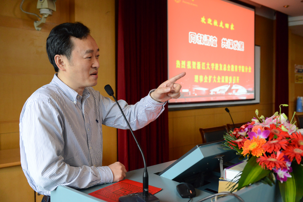 校长助理、校友总会副会长张美凤对大会召开表示祝贺,并感谢校友们百忙之中回家共度校庆。她介绍了浙江大学在各项事业上取得的成就,强调学校发展离不开校友们的支持,是50余万广大校友在全球各行各业的贡献造就了浙大今日的办学实力和声誉。她也表示,教育学院在85年办学历史中培育了大批人才、取得了长足发展,这同样离不开校友的帮助,另一方面,校友的成就凝结着一代又一代老师的心血,继续支持校友发展则是母校和校友总会义不容辞的义务。张会长坦言,理事会扩大会议顺利召开、教育学院校友们从全国各地赶来与会,让她再次感到广大校友对母校的深情厚谊。联合国幼儿园创始人之一、现已96高龄的40届教育学系姚文琴校友从纽约捎来口信,“我一直在为联合国服务,也乐意继续为母校母系服务,如果学院需要我,我随时可以飞回来”。比利时校友分会前后两任会长、体育学系75届杨焕平校友和82届骆俊校友,以及在美国创业成功的82届教育学系校友林家俊、陈建萍伉俪来电转达对同学老师的问候和对大会的祝贺。新老校友、在场或不在场,都抱着对母校母系的一片孺慕之情、拳拳回报之意,触动人心。由此,她强调,学校已明确 “六高强校”战略,在此背景下,教育学院提出并要实现创建世界先进水平学院的战略目标,迫切希望校友们为之凝聚智慧奉献力量。