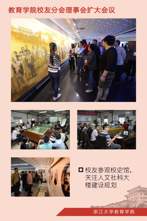 当天,数十位校友还参加了在紫金港校区举行的教育学系、体育学系座谈会,共商学科人才培养和队伍建设;参观紫金港校史馆,旧时同学的合影令校友们驻足,讶异喜悦之余情不自禁唱起校歌;走访紫金港西区建设指挥部,关注人文社科大楼规划建设进程。参与当天活动的师生,也在为“校友智库”之类新想法怦然心动,青年学生表示将珍惜和多争取与学长们相处的机会,青年教师则表示要做充满学术冲劲的“青椒”。校友们和老师同学将共同面对崭新的挑战、一起站在全新的历史起点上,同担发展重任,携手再造辉煌,建设世界先进水平教育学院,守护和发展我们共同的价值追求。